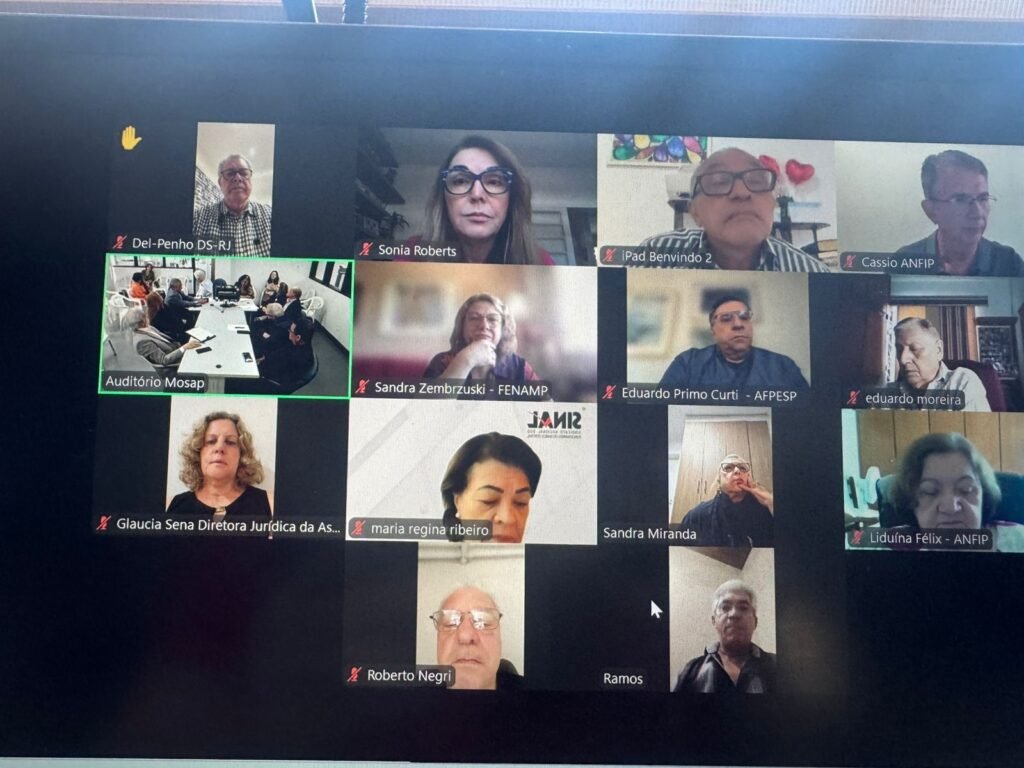 A Presidente Sônia Roberts participou de reunião com o MOSAP e demais entidades filiadas para discutir estratégias de enfrentamento aos dispositivos da Reforma Administrativa e avançar no debate sobre a PEC 6/2025, que prevê a redução gradual da contribuição previdenciária.